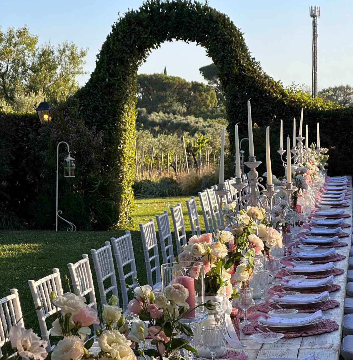 Gli spazi esterni si prestano a molteplici allestimenti, dai più rustici ai più eleganti, e offrono scorci ideali per shooting fotografici e momenti di convivialità immersi nel verde.
